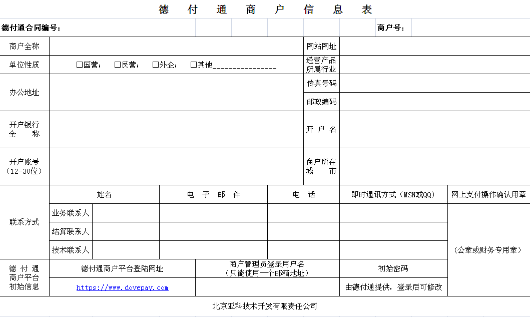 注:企业商户需向支付平台提供营业执照副本复印件(加盖公章)。